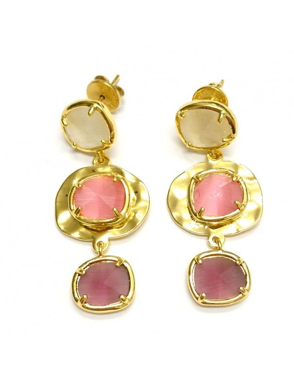 Pendientes Anartxy Dorados BPE321RS, están realizados en cobre dorados con piedras ojo de gato. Miden 40mm y cierre de presión.