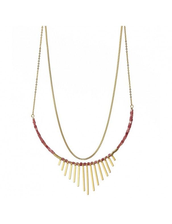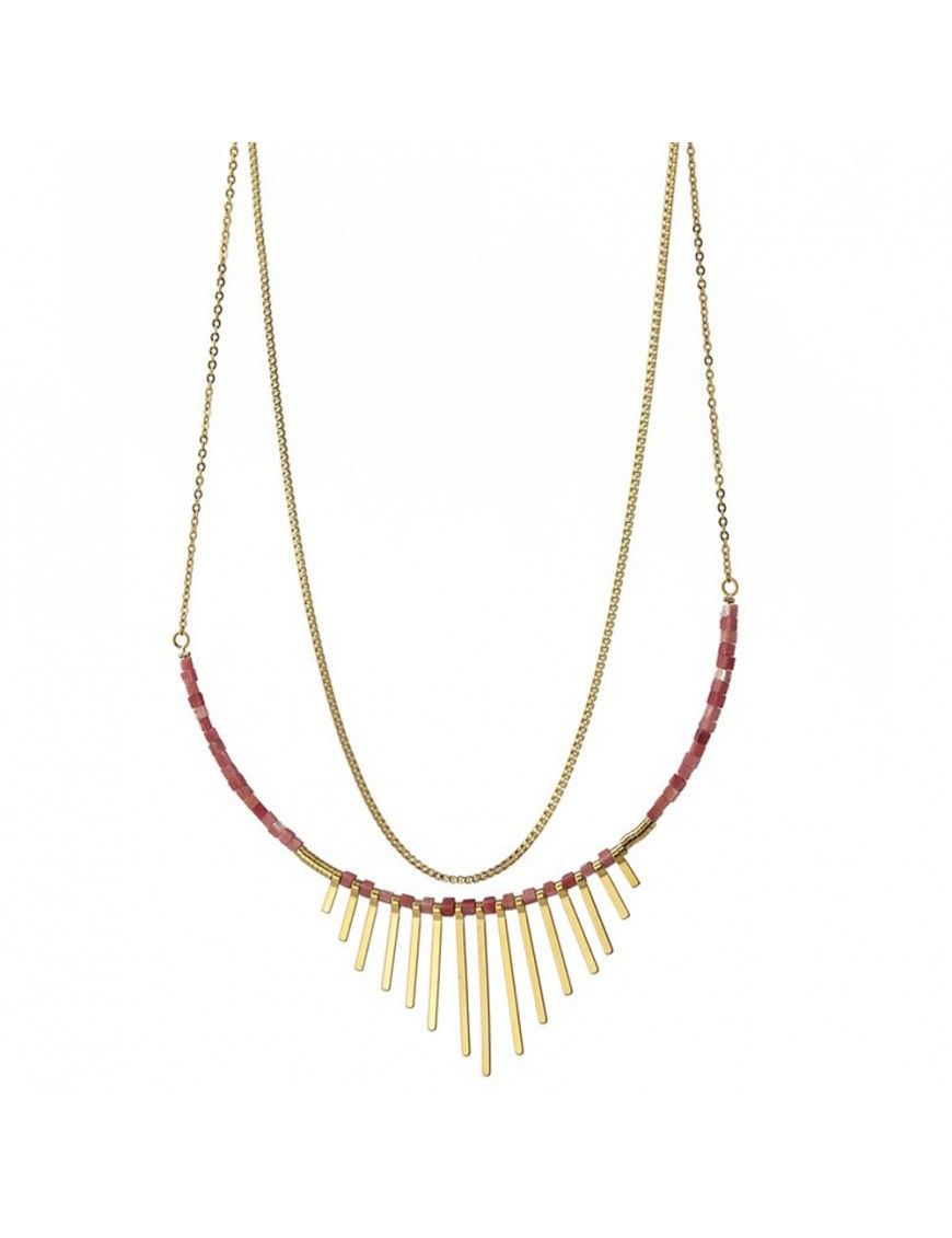 Collar Anartxy Acero Dorado Piedras BCO0003, en acero hipoalergénico. Decorado con piedras naturales. Cadena de 40cm con cadenilla de ajuste de 5cm. Cierre de mosquetón.