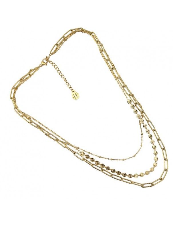 Collar Anartxy Acero Chains BCO046, en acero hipoalergénico bañado en color dorado. Cadena de 45cm y cadenilla de ajuste de 5cm. Cierre de mosquetón.