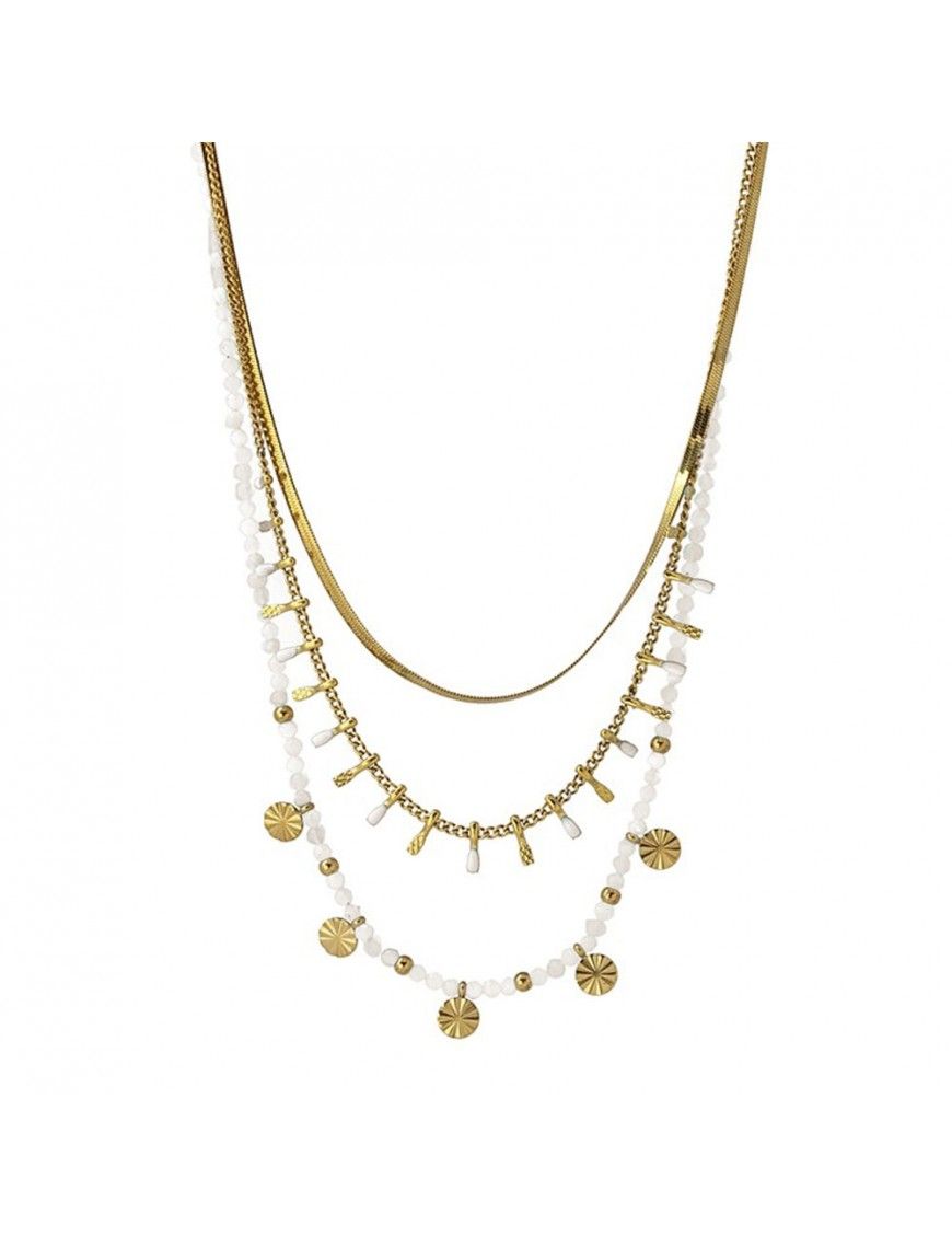 Collar Anartxy Acero Charms BCO056, en acero hipoalergénico bañado en color dorado. Decorado con cristales. Cadena de 40cm y cadenilla de ajuste de 5cm. Cierre de mosquetón.