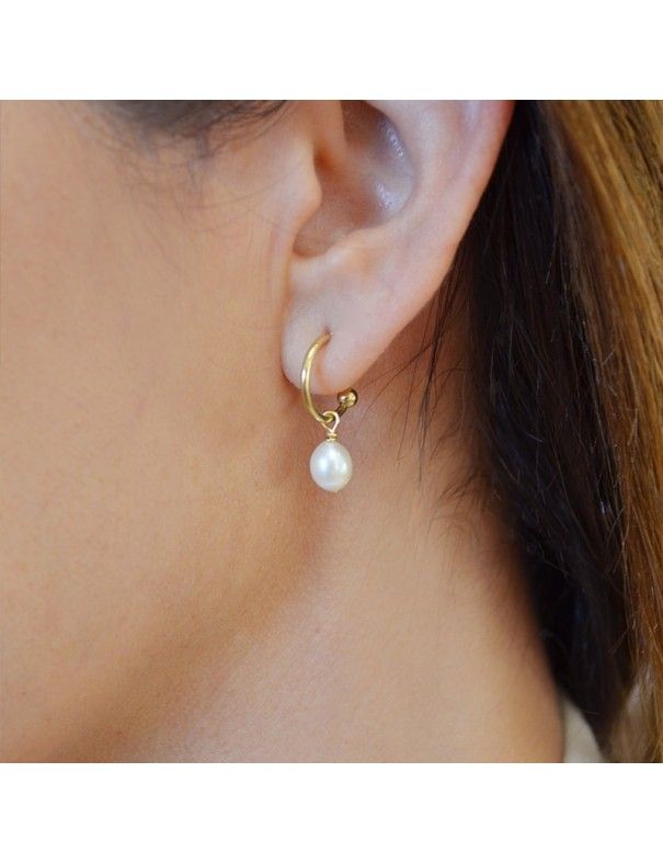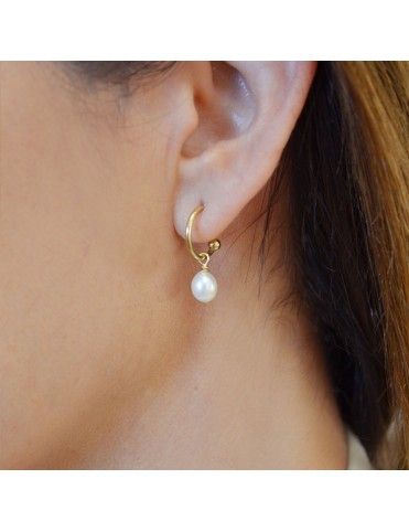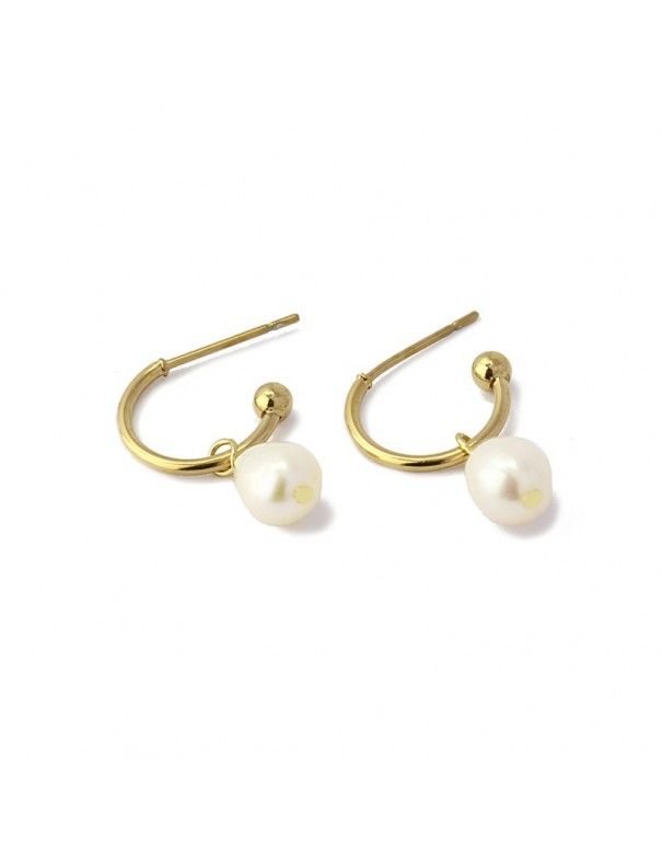 Pendientes Anartxy Acero Aros Perla BPE584, en acero hipoalergénico bañado en color dorado. Decorados con perlas sintéticas. Longitud de 12mm. Cierre de presión.