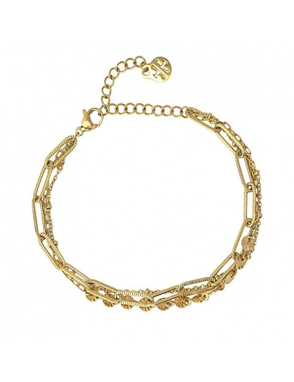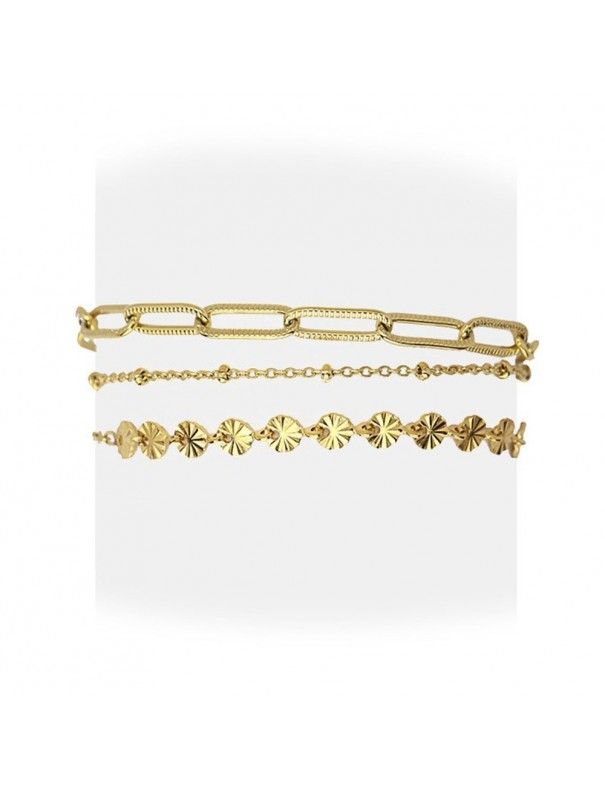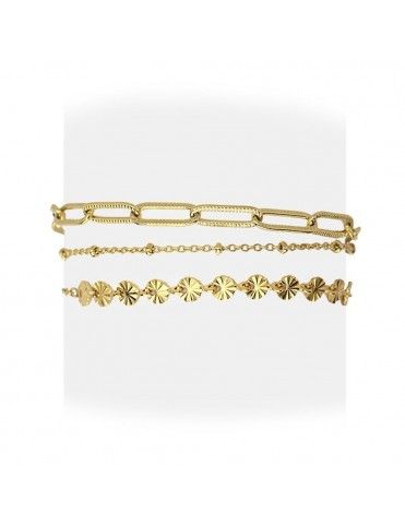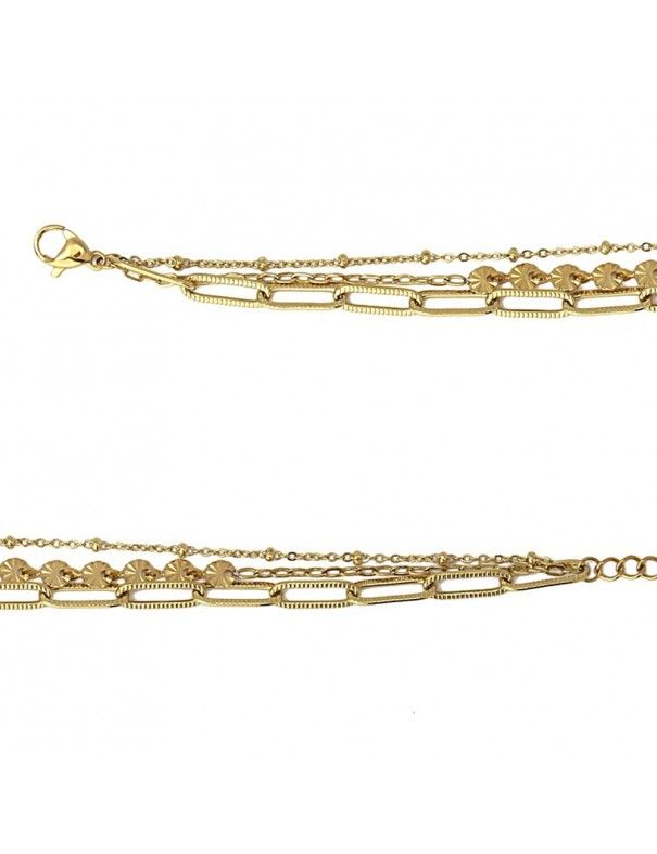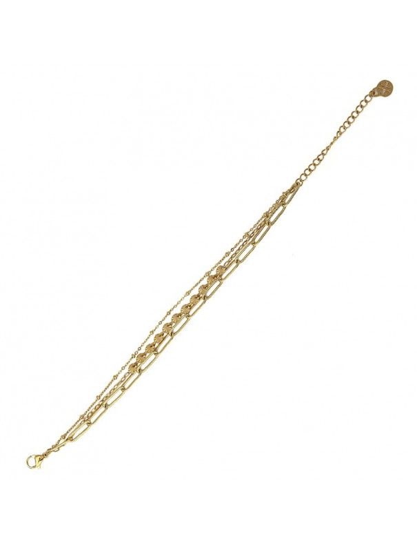 Pulsera Anartxy Acero Dorado Chains BPU173, en acero hipoalergénico bañado en color dorado. Compuesta por tres cadenas. Longitud de 5cm con cadenilla de ajuste de 5cm. Cierre de mosquetón.