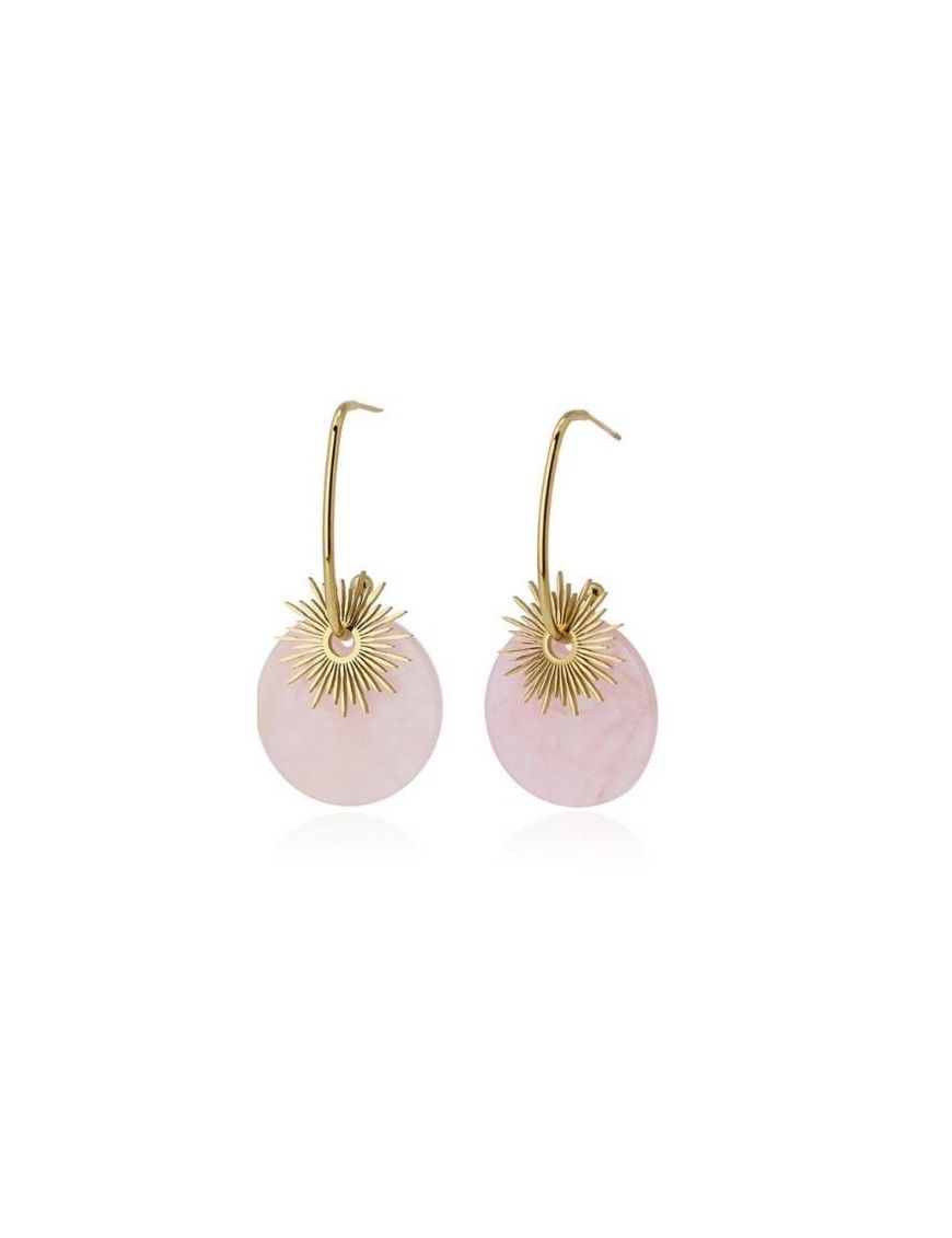 Pendientes Anartxy Acero Dorado Círculo BPE605, en acero hipoalergénico bañado en color dorado y decorado con piedra natural. Longitud de 40mm. Cierre de mosquetón.