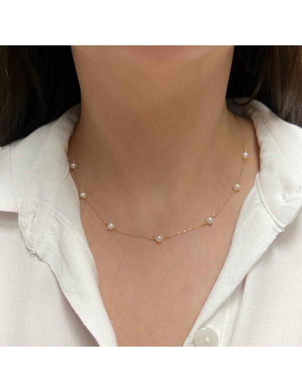 Collar Oro Amarillo 18Kts Perlas 4203-CAD. Es un collar para mujer realizado en oro amarillo de 18Kts, Lleva una cadena de 40 cm de largo con un asa intermedia a 42cm y lleva intercaladas siete perlas cultivadas de 4mm diámetro. Un collar ideal para cualquier ocasión. Tres años de garantía contra defecto de fabricación.