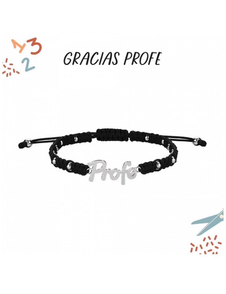 Pulsera Profe Plata Cordón Negro 9120735. Es de plata de primera ley de 925 mls y baño de rodio. El cordón el de hilo negro decorado con bolitas de plata de 3 mm de diámetro. Garantía de tres años.