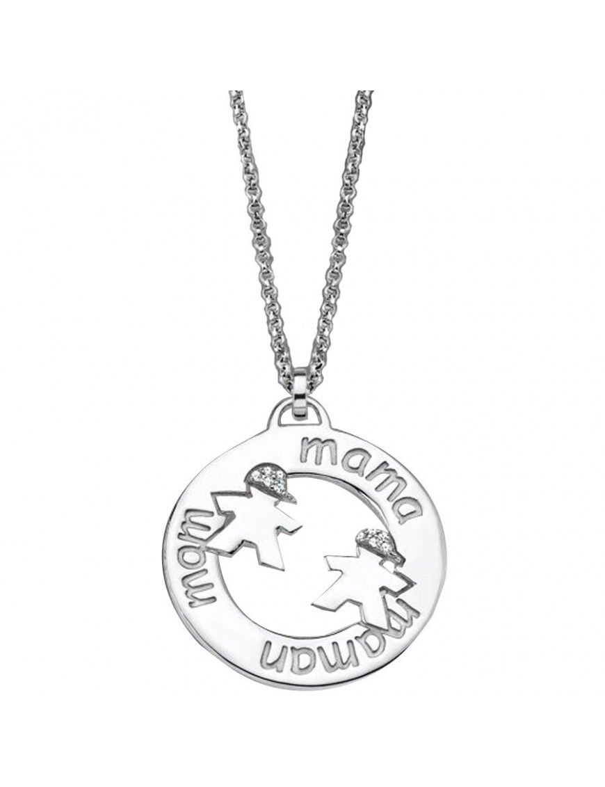 Collar Lotus Silver Plata Mujer LP1582-1/2. La pulsera es original de la marca Lotus Silver, para mujer. Está hecho en plata de ley, 925mls. El colgante tiene forma de disco, está decorado con la figura de dos niños, sus gorras están terminadas en circonitas transparentes, y contiene la grabación de la palabra "mama" en varios idiomas.