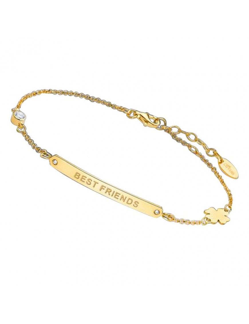 Pulsera Lotus Silver Plata Mujer LP1650-2/2. Consiste en una pulsera original de la marca Lotus Silver, somos distribuidores oficiales. Está elaborada en plata de ley, 925mls, terminada en color dorado. Decorada con una circonita, un trébol de la suerte y por la frase "best firends"