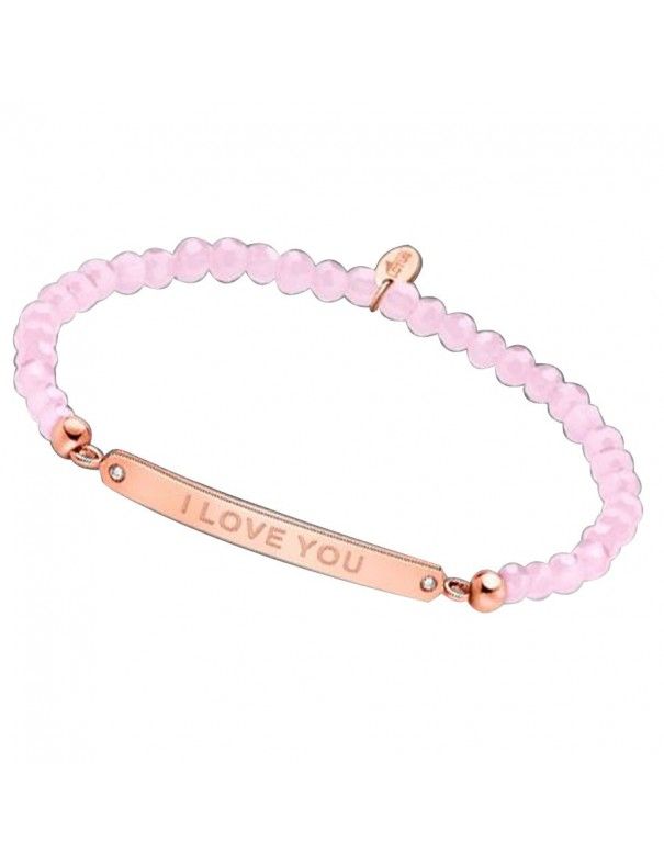 Pulsera Lotus Silver Plata Mujer LP1654-2/2. Consiste en una pulsera original de la marca Lotus Silver, somos distribuidores oficiales. Es elástica, compuesta por cuentas rosas facetadas y por plata de ley, 925mls, terminada en color oro rosa. Decorada con la frasea "I love you".