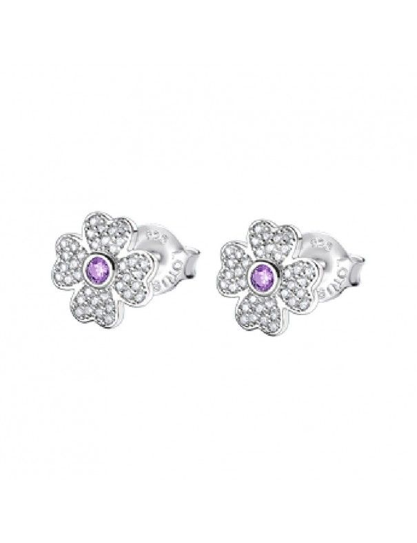 Pendientes Lotus Silver mujer LP1944-4/1. Son unos pendientes diseñados por la marca Lotus Silver para mujer. Están realizados en plata de ley, 925mls con baño de rodio en forma de trébol decorados con circonitas cúbicas transparentes con una mayor central en color morada. El cierre es a presión.
