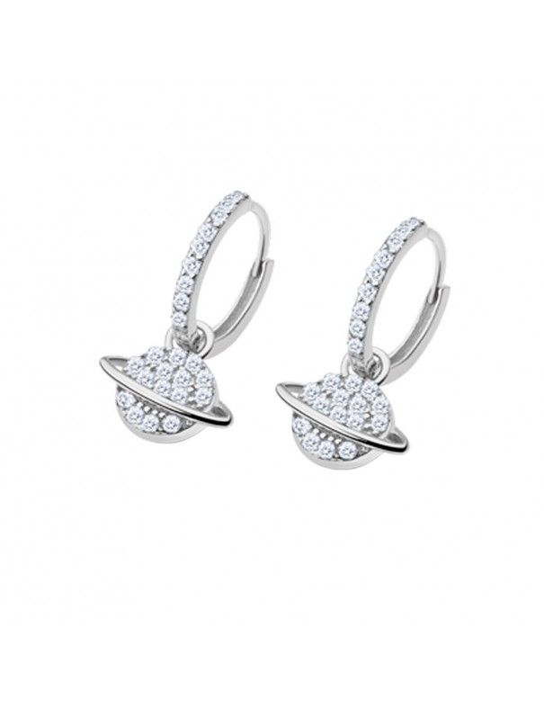Pendientes Lotus Silver Planeta LP3071-4/1, en plata de Ley 925mls rodiada. Aros decorados con circonitas y silueta colgante en forma de planeta. Cierre automático. Diámetro de 1,1cm.