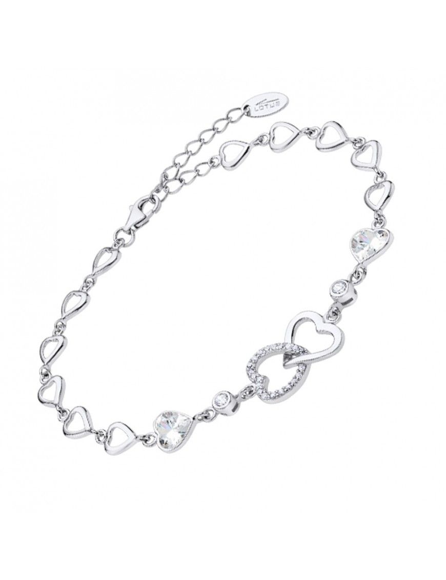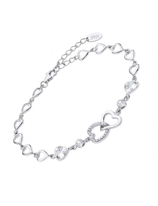 Pulsera Lotus Silver Doble Corazón LP3093-2/1, en plata de Ley 925mls rodiada. De 19cm de larga con cadenilla de ajuste de 3cm adicionales. Doble corazón central con circonitas en uno de ellos, resto de cadena decorada con corazones y circonitas.