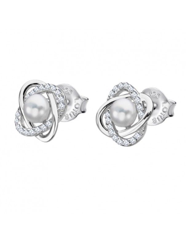 Pendientes Lotus Silver Perla LP3094-4/1, en plata de Ley 925mls rodiada. Perla central acompañada de tira de plata y una segunda con circonitas. Cierre de presión.