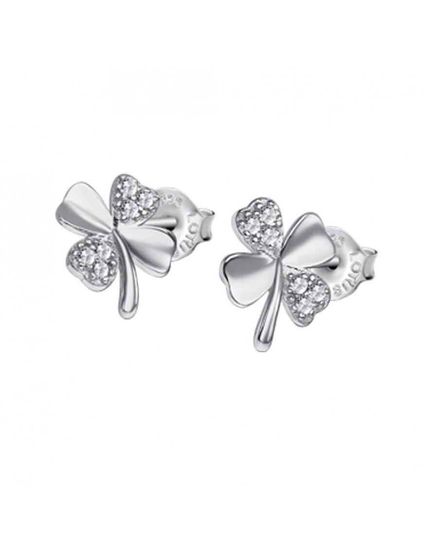 Pendientes Lotus Silver Cuatrébol LP3108-4/1, en plata de Ley 925mls rodiada. Forma de trébol de cuatro hojas con circonitas en dos de sus hojas. Cierre de presión.