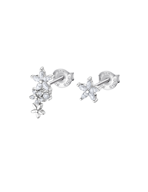 Pendientes Lotus Silver Mujer LP3090-4/2, en plata de primera ley 925mls y circonitas. Asimétricos. Cierre de presión.