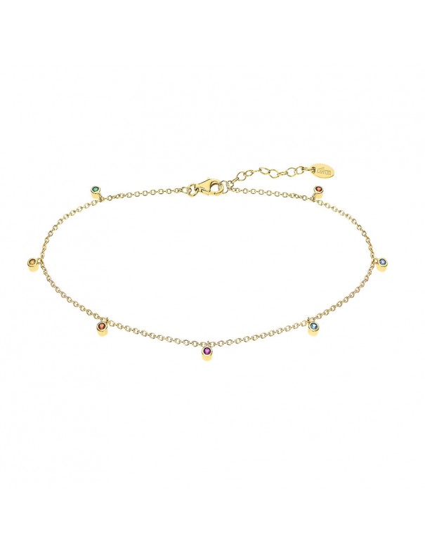 Pulsera Tobillera Lotus Silver LP3245-8/2, en plata de primera ley 925mls en color dorado. Longitud de 23cm y cadenilla adicional de 3cm. Cierre de mosquetón. Circonitas de color de 3mm de diámetro.