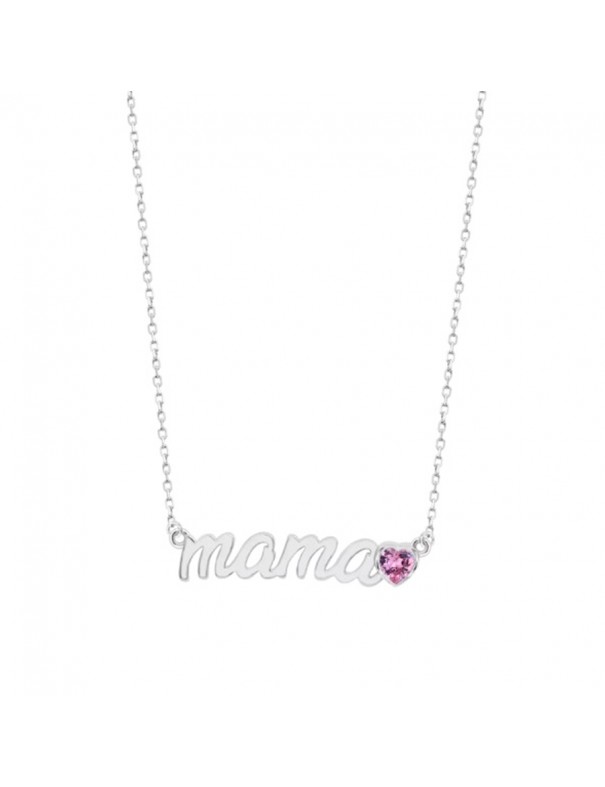 Collar Lotus Silver Mamá LP1808-1/3. Confeccionado en plata de ley con acabado brillante y diseño delicado con un estilo elegante y atemporal. Presenta un detalle decorativo en forma de corazón con circonita rosa que aporta un toque luminoso a la pieza.