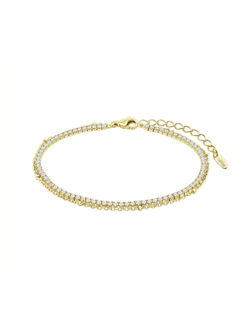 Pulsera Lotus Silver Cadena Pure Essential LP3181-2/2. Confeccionada en plata de ley con baño dorado. Presenta un acabado pulido y diseño refinado de cadena tipo riviere. Está adornada con circonitas blancas engastadas que aportan un toque de brillo elegante, ideal para uso diario o eventos especiales.