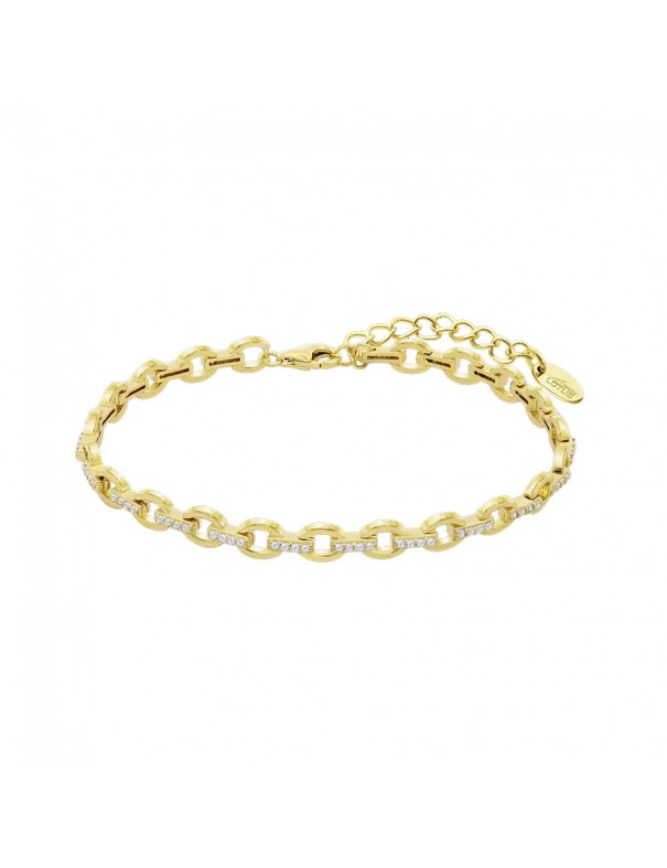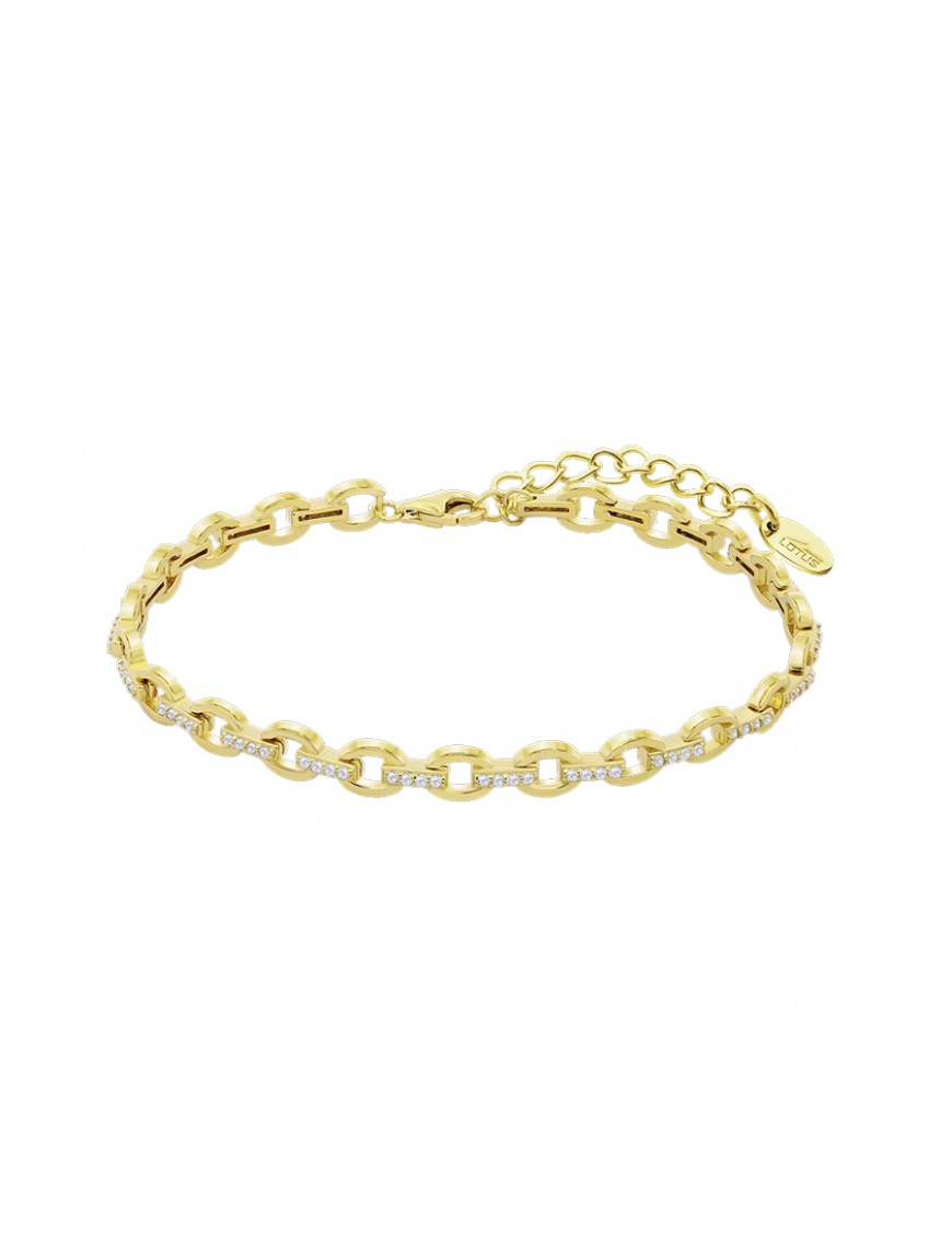 Pulsera Lotus Silver Cadena Mujer LP3306-2/2. Confeccionada en plata de ley chapada en oro amarillo con acabado pulido y diseño de eslabones finos. Los eslabones centrales están decorados con circonitas blancas engastadas que aportan brillo elegante y sofisticado. Presenta cierre de mosquetón que lo hace seguro.