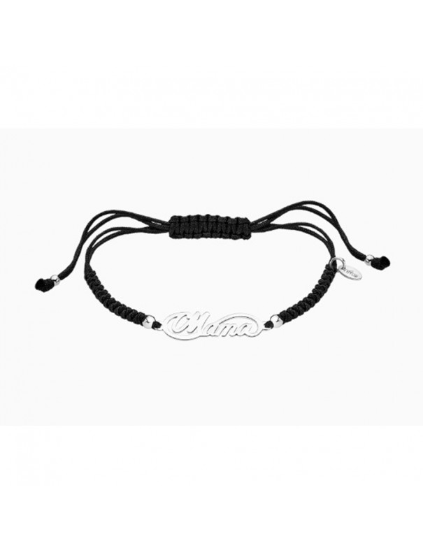 Pulsera Lotus Silver Mamá LP3402-2/2. Pulsera elaborada en plata de ley 925 combinada con hilo textil en color negro y plateado, con cierre ajustable deslizante que permite adaptar la longitud al muñeca.