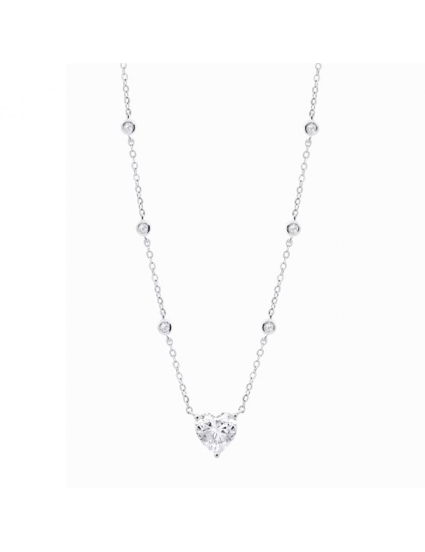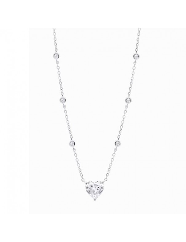 Collar Lotus Silver Corazón LP3648-1/1. Fabricado en plata de primera ley 925 con acabado brillante, presenta un colgante con forma de corazón adornado con una circonita que aporta un toque luminoso y romántico al diseño.