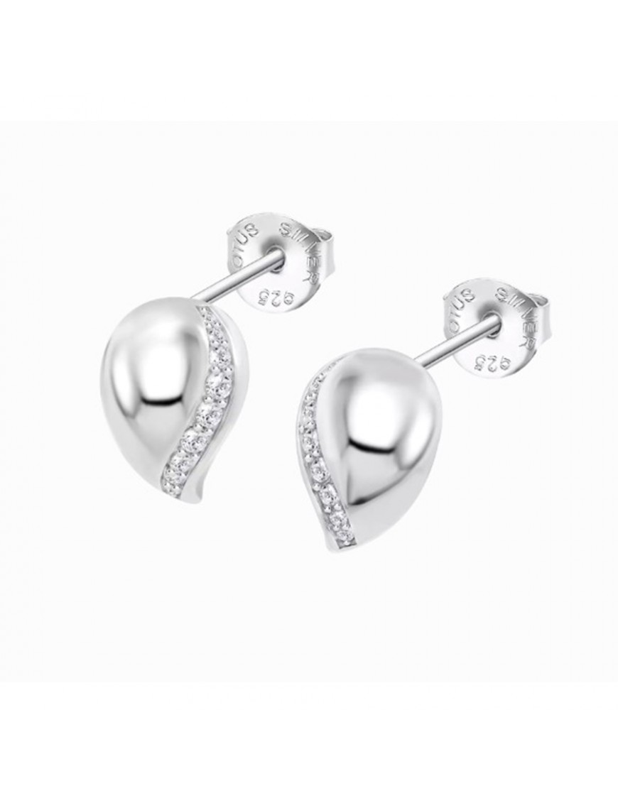 Pendientes Lotus Silver Trendy LP3779-4/1. Realizados en plata de ley 925 con diseño de botón en forma de gota y cierre de presión, acabado en color plateado elegante y ligero. Incorporan pequeñas piedras de circonita que aportan brillo sutil y sofisticado, ideales para uso diario o looks más formales.