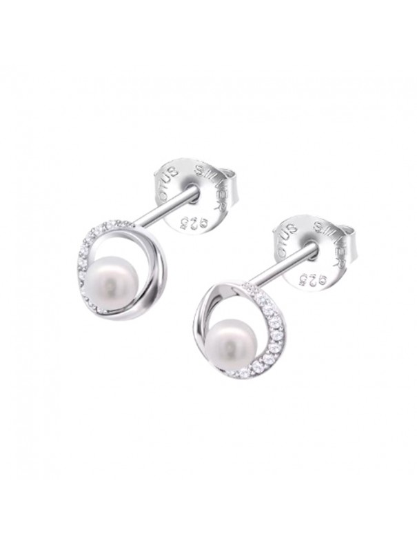 Pendientes Lotus Silver Perla LP3898-4/1. Elaborados en plata de ley 925 con acabado plateado elegante. Cada pendiente incorpora una perla cultivada y está decorado con varias circonitas blancas engastadas que aportan brillo y sofisticación, con cierre de presión para comodidad y estilo.