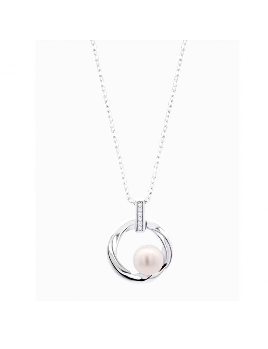 Collar Lotus Silver Perla LP3902-1/1. Elaborado en plata de ley 925 con acabado pulido plateado y diseño circular elegante con colgante de perla cultivada de tamaño mediano acompañado de varias circonitas engastadas en fila que aportan un brillo sofisticado y femenino. La cadena es ajustable y aporta versatilidad.