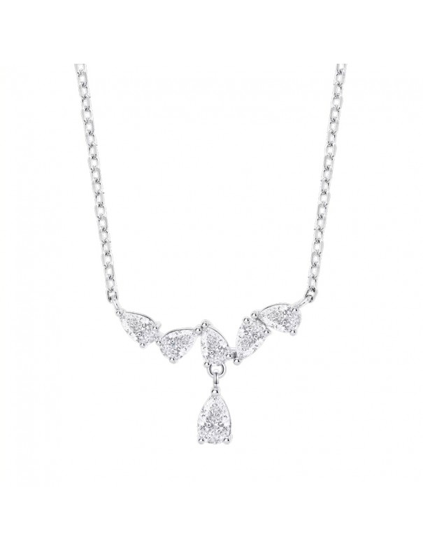 Collar Lotus Silver Glam LP3907-1/1. Elaborado en plata de ley 925 con acabado pulido plateado y diseño delicado de cadena con colgante decorado con varias circonitas engastadas que aportan un brillo elegante y sofisticado. La cadena incluye alargador (42 + 3 cm) para ajuste de largo.