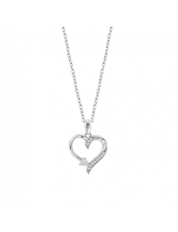 Collar Lotus Silver Corazón Circonitas LP3916-1/1. Realizado en plata de ley con acabado plateado, presenta un diseño delicado de cadena fina con colgante en forma de corazón. El colgante está decorado con 12 pequeñas circonitas que aportan brillo y elegancia. La cadena mide aprox. 42 cm con extensión de 3 cm y cierre de mosquetón para un ajuste cómodo.