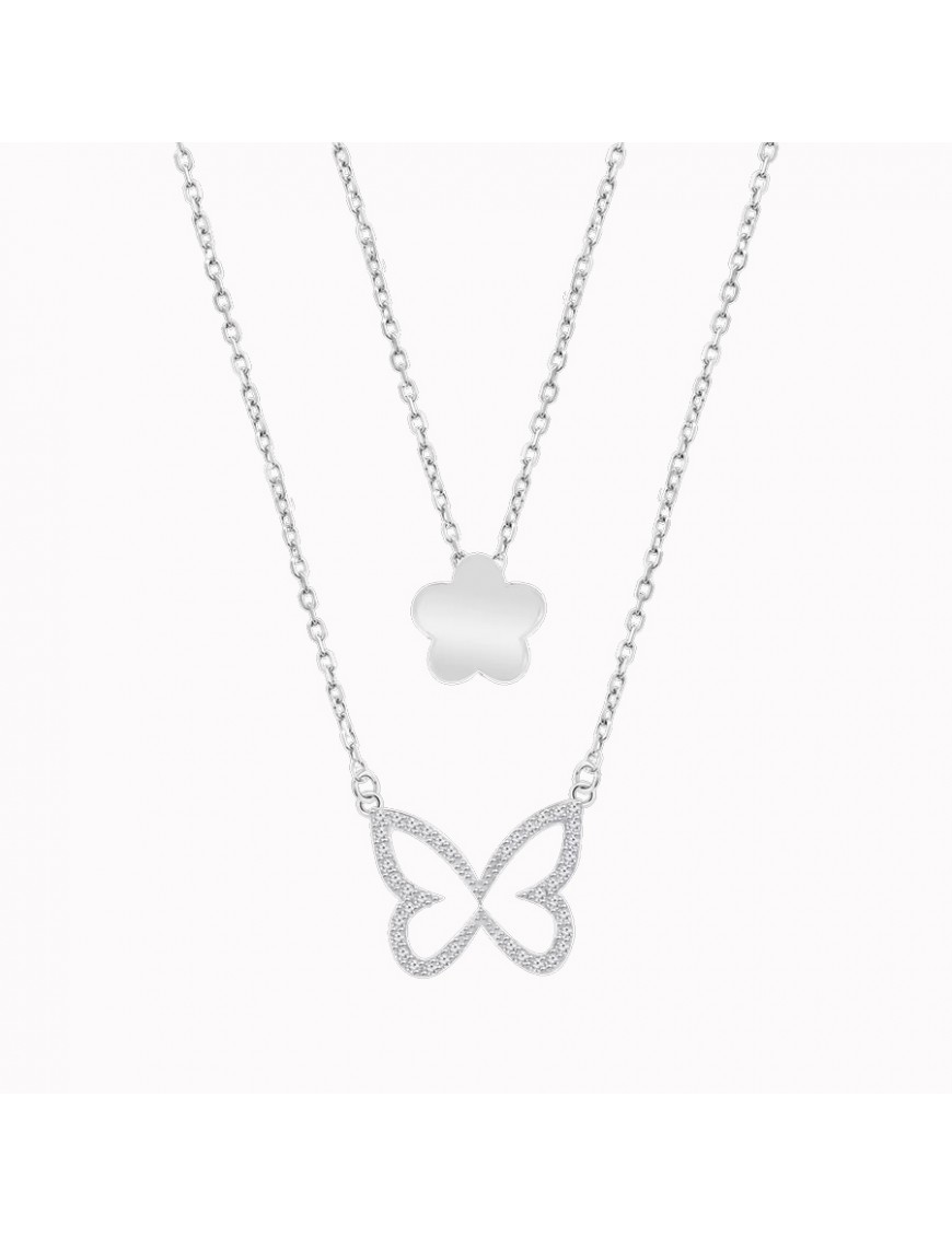 Collar Lotus Silver Plata Mujer LP3825-1/1. Fabricado en plata de ley 925 con acabado brillante que le aporta durabilidad y estilo. Incluye colgante con diseño floral y mariposa adornado con circonitas de talla brillante que realzan su brillo elegante. La cadena es ajustable para mayor comodidad y versatilidad.