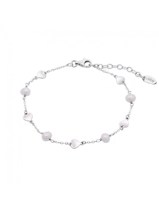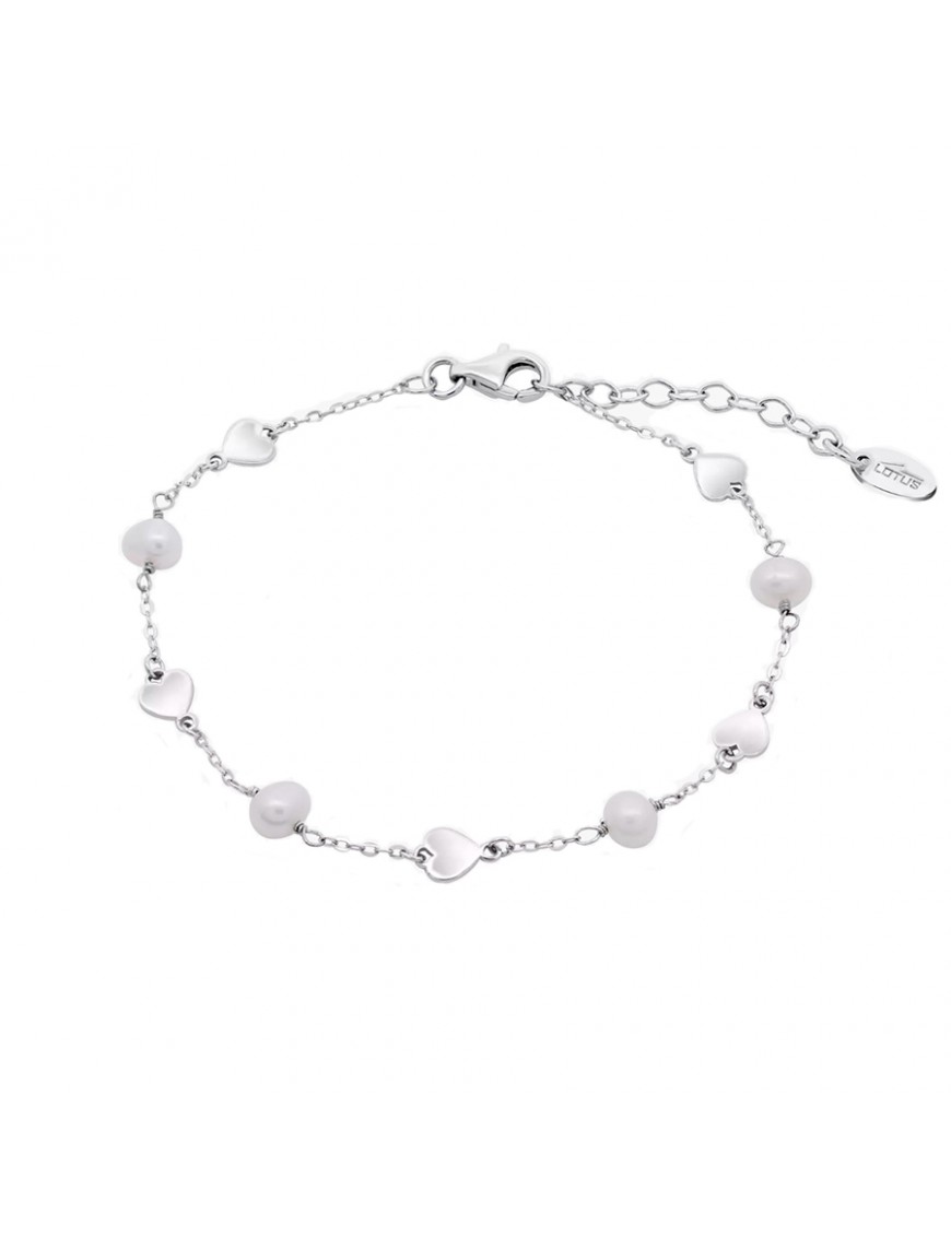 Pulsera Lotus Silver LP3855-2/1. Creada en plata de ley 925 con diseño delicado que incorpora corazones y perlas intercaladas a lo largo de la pulsera, aportando un toque romántico y elegante. Su estilo versátil la hace perfecta tanto para el día a día como para ocasiones especiales.