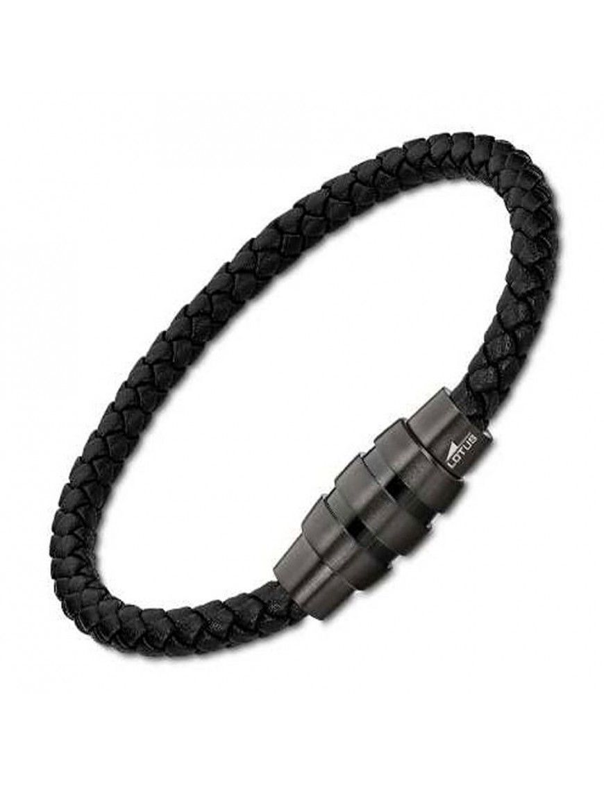 Pulsera Lotus Style Hombre LS2040-2/1, en acero hipoalergénico y piel en color negro. Longitud de 22cm. Cierre magnético.