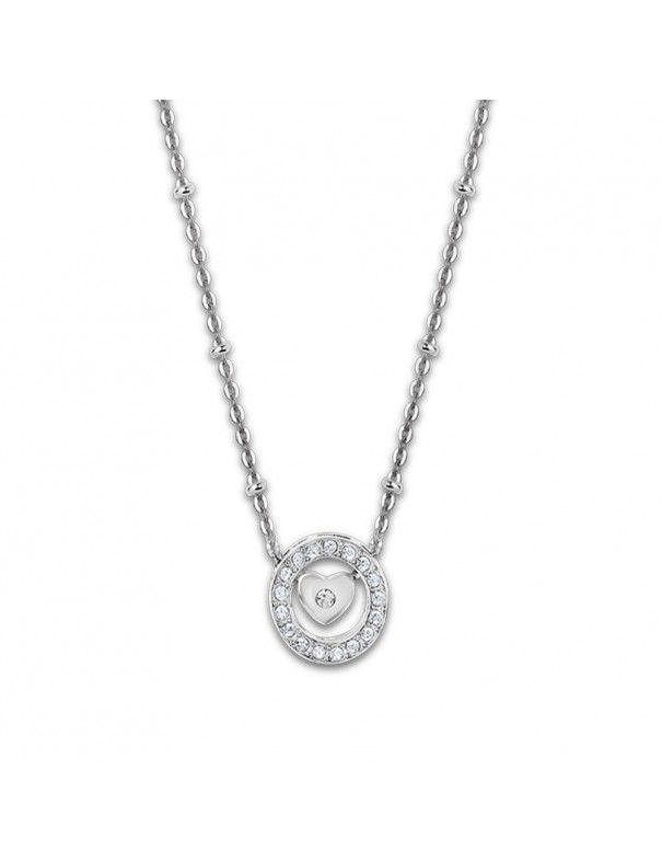Collar Lotus Style Corazón LS2125-1/1, en acero hipoalergénico. Cadena decorada con anillas y cierre de mosquetón. Corazón en el centro del círculo, ambos motivos con circonitas. Garantía de dos años contra defectos de fabricación.
