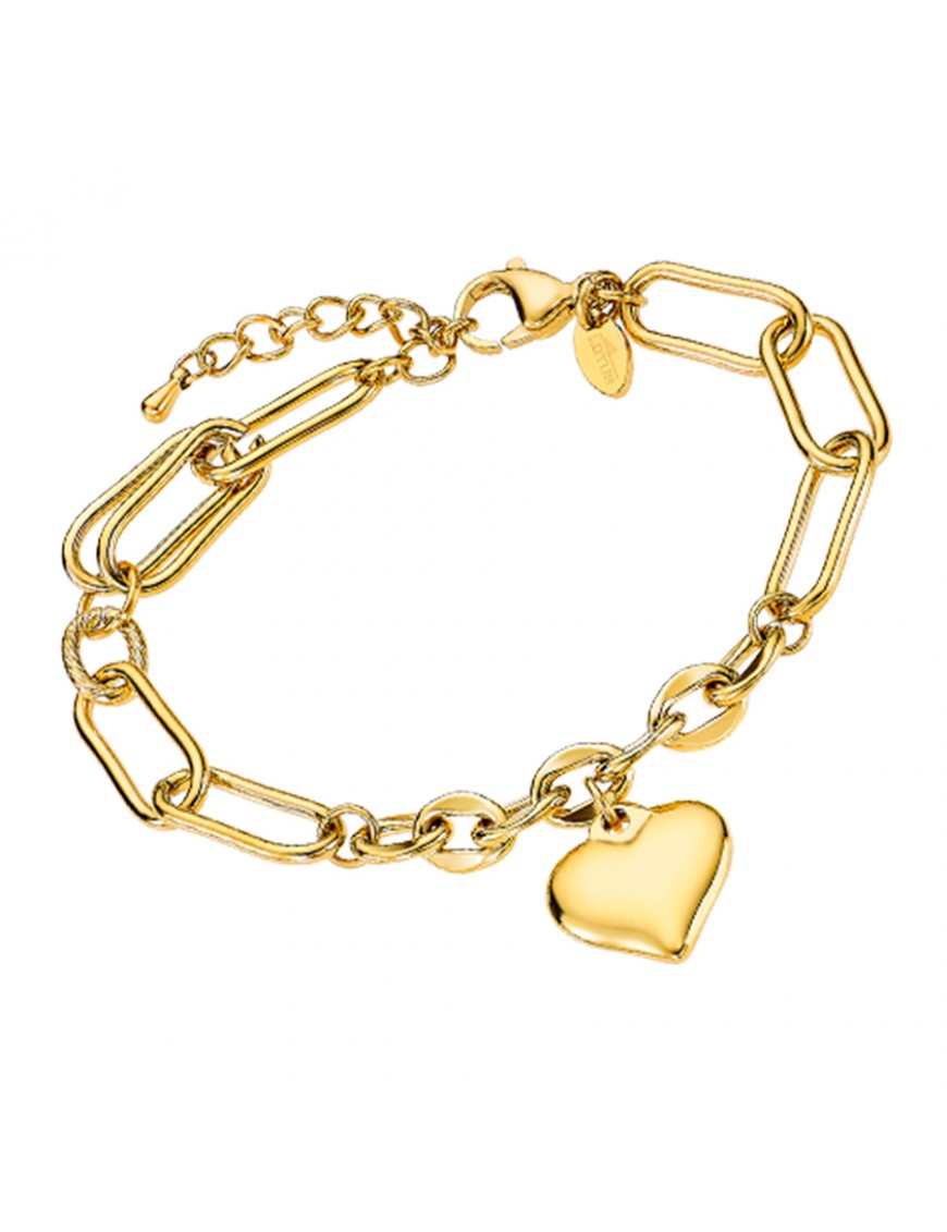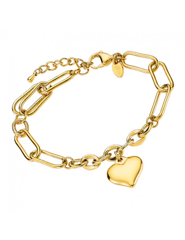 Pulsera de acero Lotus Style Dorada Corazón LS2334-2/2 para mujer. Es de acero hipoalergénico bañado en color dorado y eslabones. Mide 20 cm de largo incluida la cadenita de ajuste.