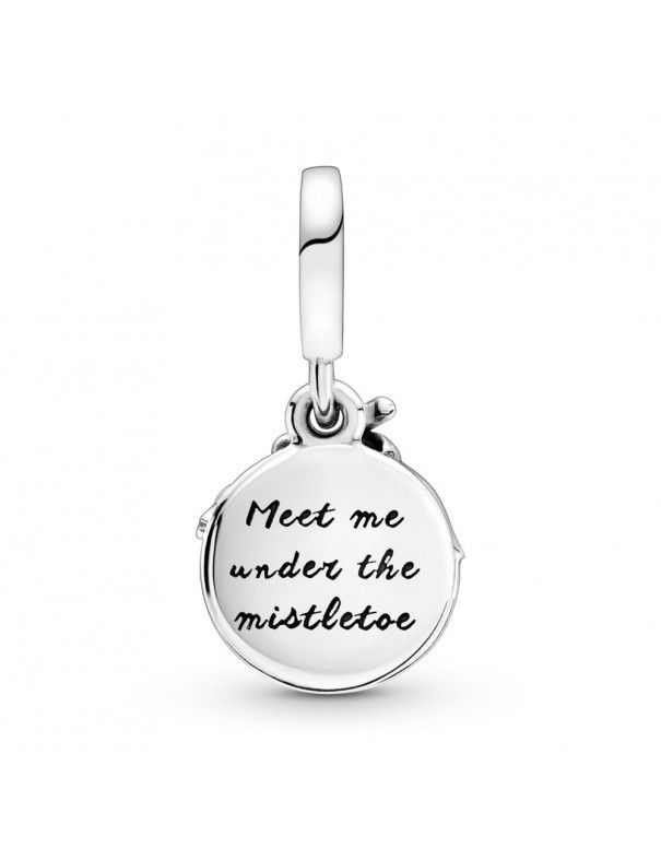 Charm Pandora Muérdago Navideño 799229C01 de plata de primera ley de 925 mls con esmalte y circonitas. Lleva la inscripción "Meet me under the mistletoe" y "Chistmas Wishes". Garantía de dos años contra defectos de fabricación.