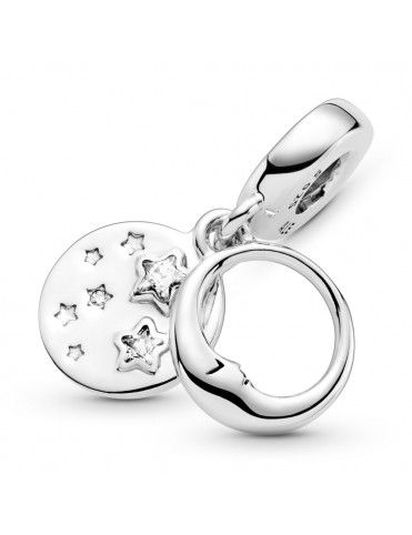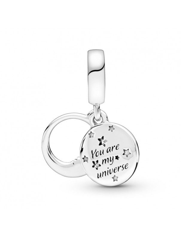 Charm Colgante Pandora Luna Durmiente y Estrellas 799240C01 de plata de primera ley de 925 mls con circonitas y la inscripción "You are my universe". Garantía de dos años contra defectos de fabricación.