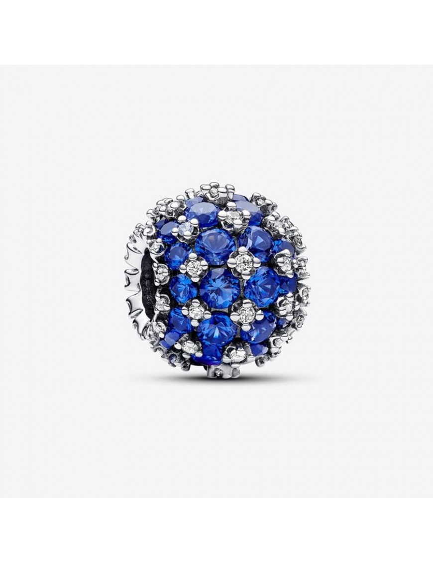 Charm Pandora Azul Redondo Brillante en Pavé 792630C02. Es de plata de primera ley de 925 mls con circonitas y cristales azules. Garantía de tres años.