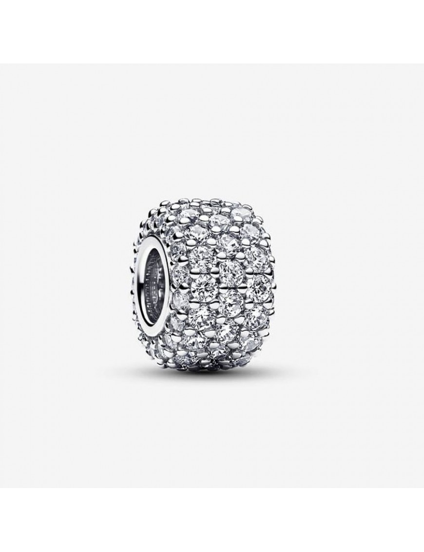 Charm Pandora Triple Fila Brillante en Pavé 792820C01. Es de plata de primera ley de 925 mls con 85 circonitas.