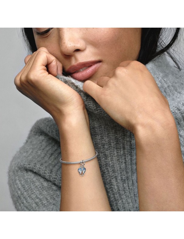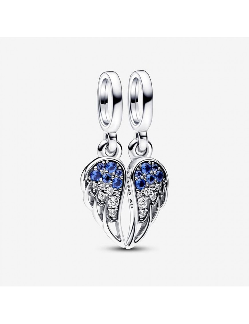 Charm Pandora Alas de Ángel Divisibles Brillantes 792821C01. Es es plata de primera ley de 925 mls con circonitas y cristales azules. Lleva el grabado I'll always be there. Garantía de tres años.