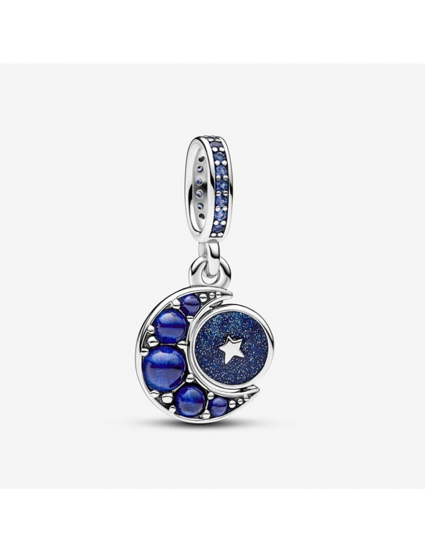 Charm Pandora Colgante Giratorio Luna Brillante 792979C01. Es de plata de primera ley de 925 mls con cristales sintéticos. Garantía de tres años.