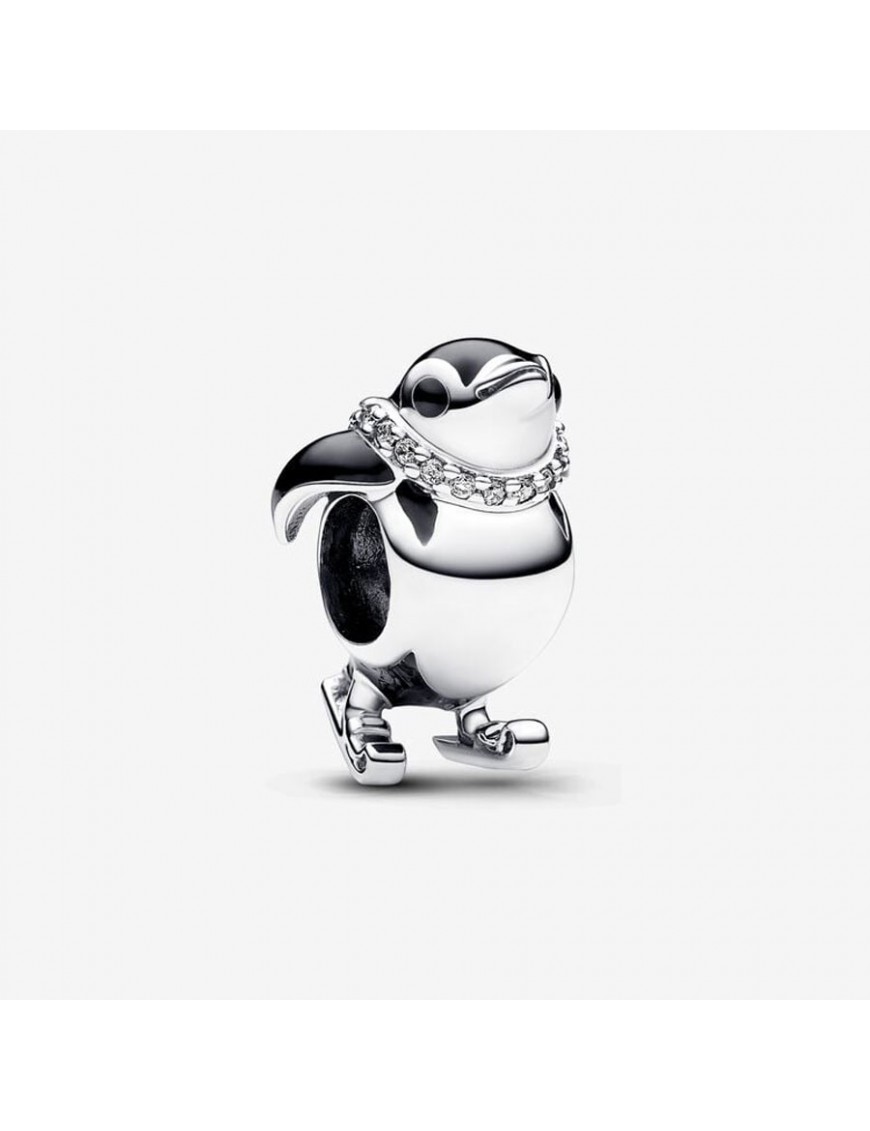 Charm Pandora Pingüino Esquiador 792988C01. Es de plata de primera ley de 925 mls con esmalte y circonitas. Garantía de tres años.