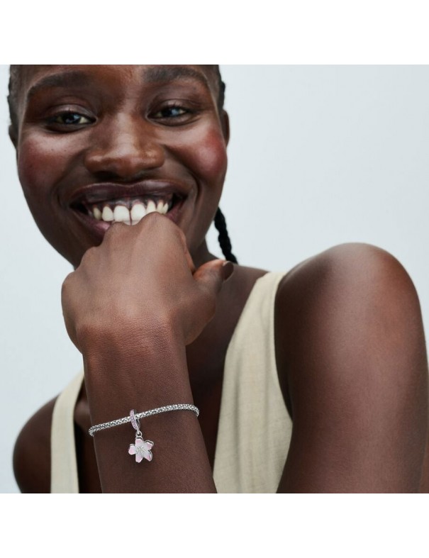 Charm Pandora Colgante Flor Cerezo 790667C01. Es de plata de primera ley de 925 mls con circonitas y esmalte. Garantía de tres años.