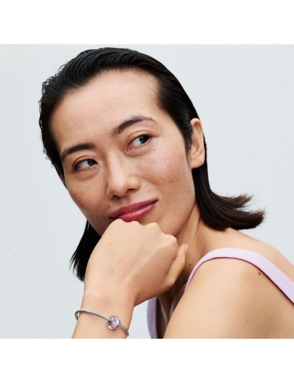 Charm Pandora Cristal Rosa Envuelto 793241C00 Fabricado en plata de ley 925 mls y cristal de murano de color rosa. Tiene tres años de garantía.
