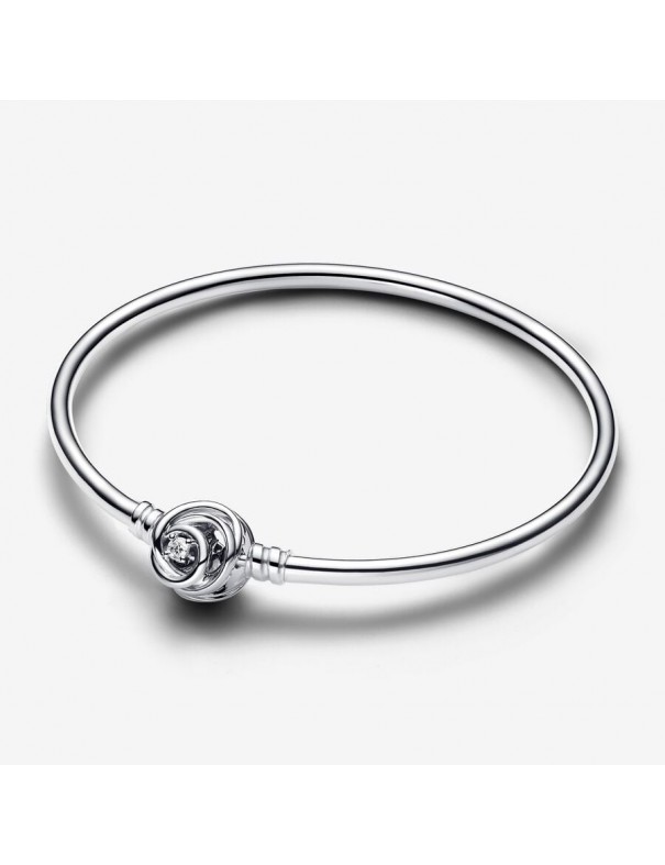 Pulsera Pandora Moments Rígida Cierre Envuelto 593229C01-19 fabricada en plata 925 mls, en el cierre tiene el detalle de un circonita cúbica transparente. Tiene tres años de garantía.