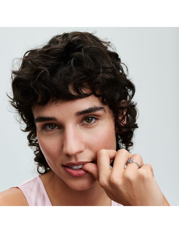 Anillo Talla 12 Pandora Rosa Floreciendo 193215C01-52 fabricado en plata de primera ley 925 mls con forma de rosa y decorado con circonitas en el aro. Tiene tres años de garantía.