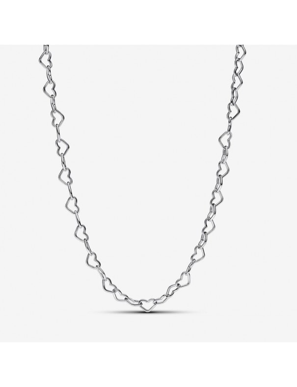 Collar Pandora Corazones unidos 393334C00-45 fabricado en plata de ley 925 mls. Está formada por corazones enlazados, puedes decorar esta cadena con tu charm de Pandora favorito.