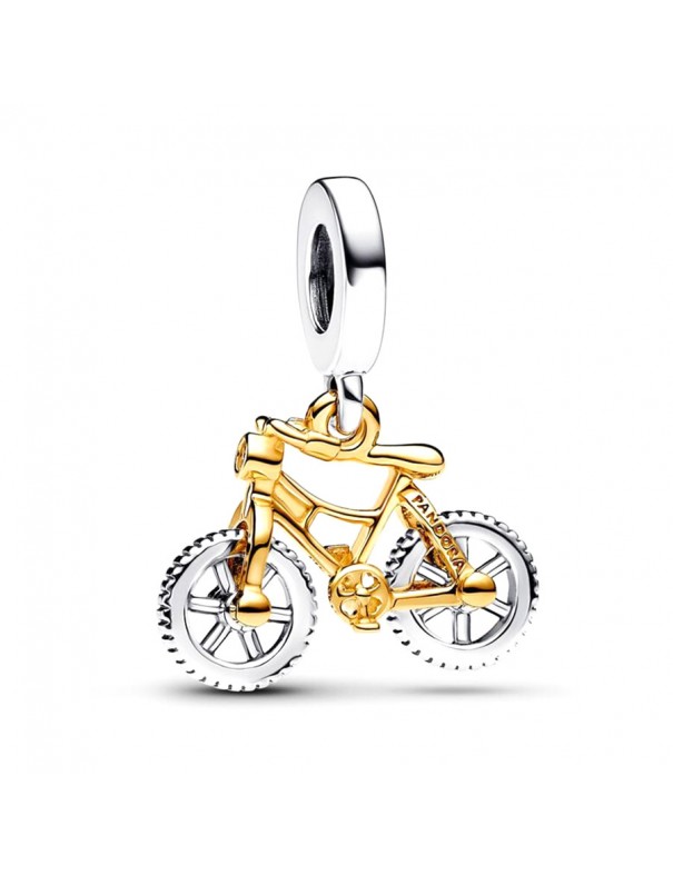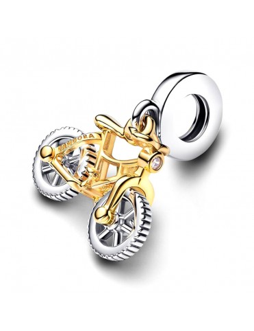 Charm Colgante Ruedas de Bicicleta Girando en Dos Tonos 763354C01. Charm colgante de bicicleta con detalles realistas a dos tonos fabricado con plata de primera ley y una aleación de metales con recubrimiento de oro de 14 k. Garantía de 3 años.