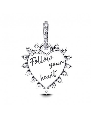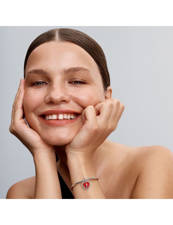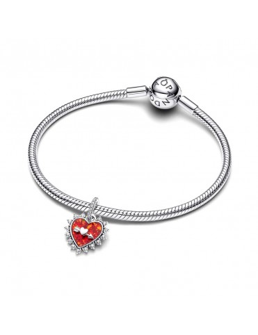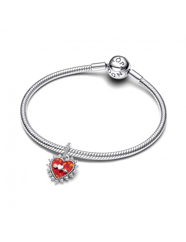 Charm Colgante Flecha Corazón Giratorio 793667C01. Charm colgante creado en plata de primera ley con ópalo creado en color rojo con forma de corazón recubierto por circonitas transparentes. Garantía de 3 años.