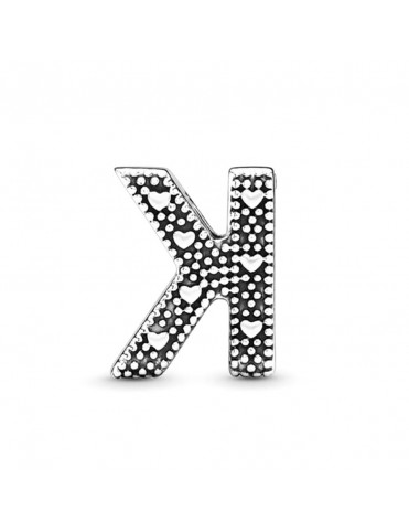 Charm en plata de ley Letra K 797465. Creada en primera plata de ley con detalles redondos y en forma de corazón por la parte trasera. Garantía de 3 años.