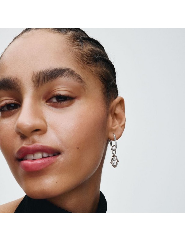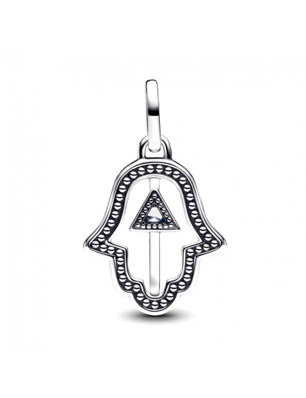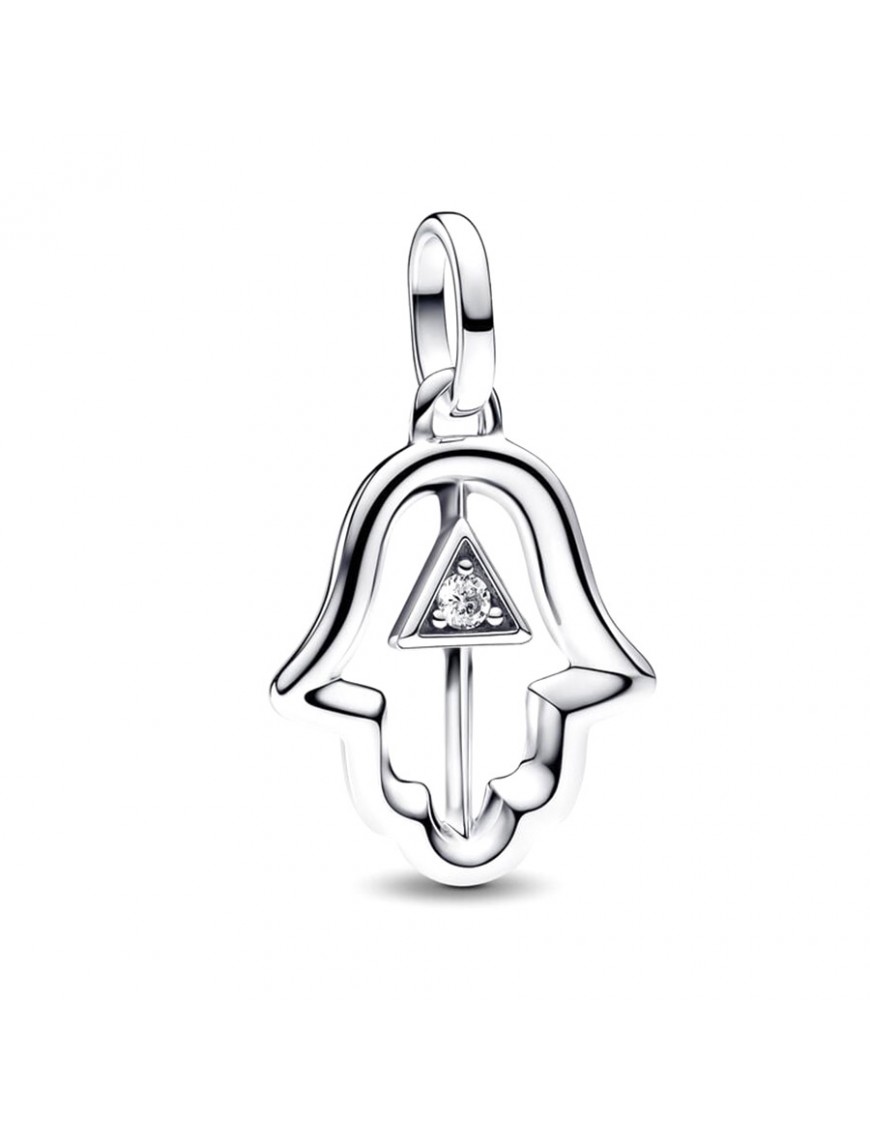 Charm Medallón Pandora ME Mano Hamsa 793411C01. Charm colgante en forma de Mano de Hamsa creado en plata de primera ley con una circonita en el medio y adornada por el reverso con microengastes. Garantía de 3 años.